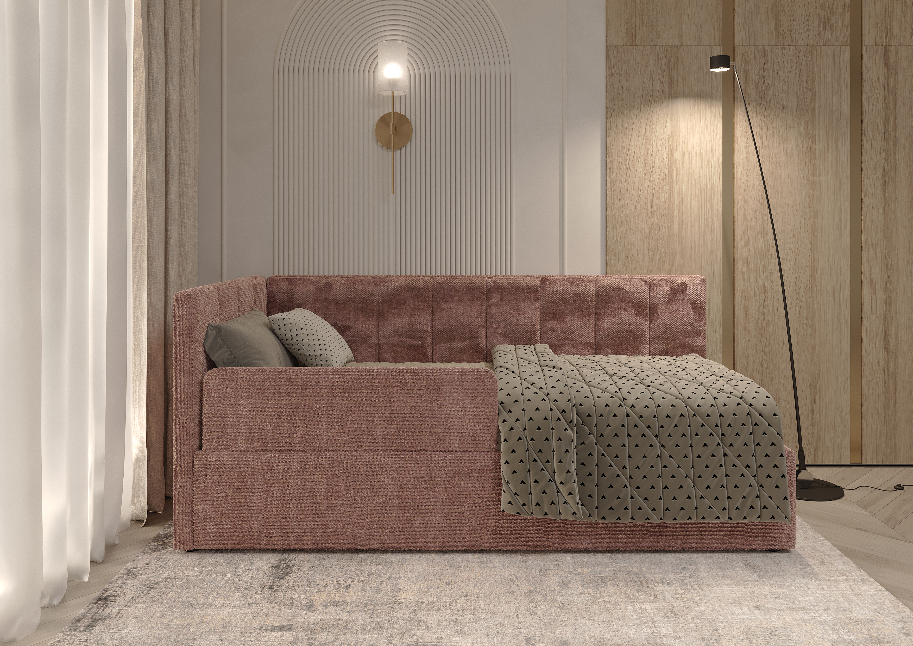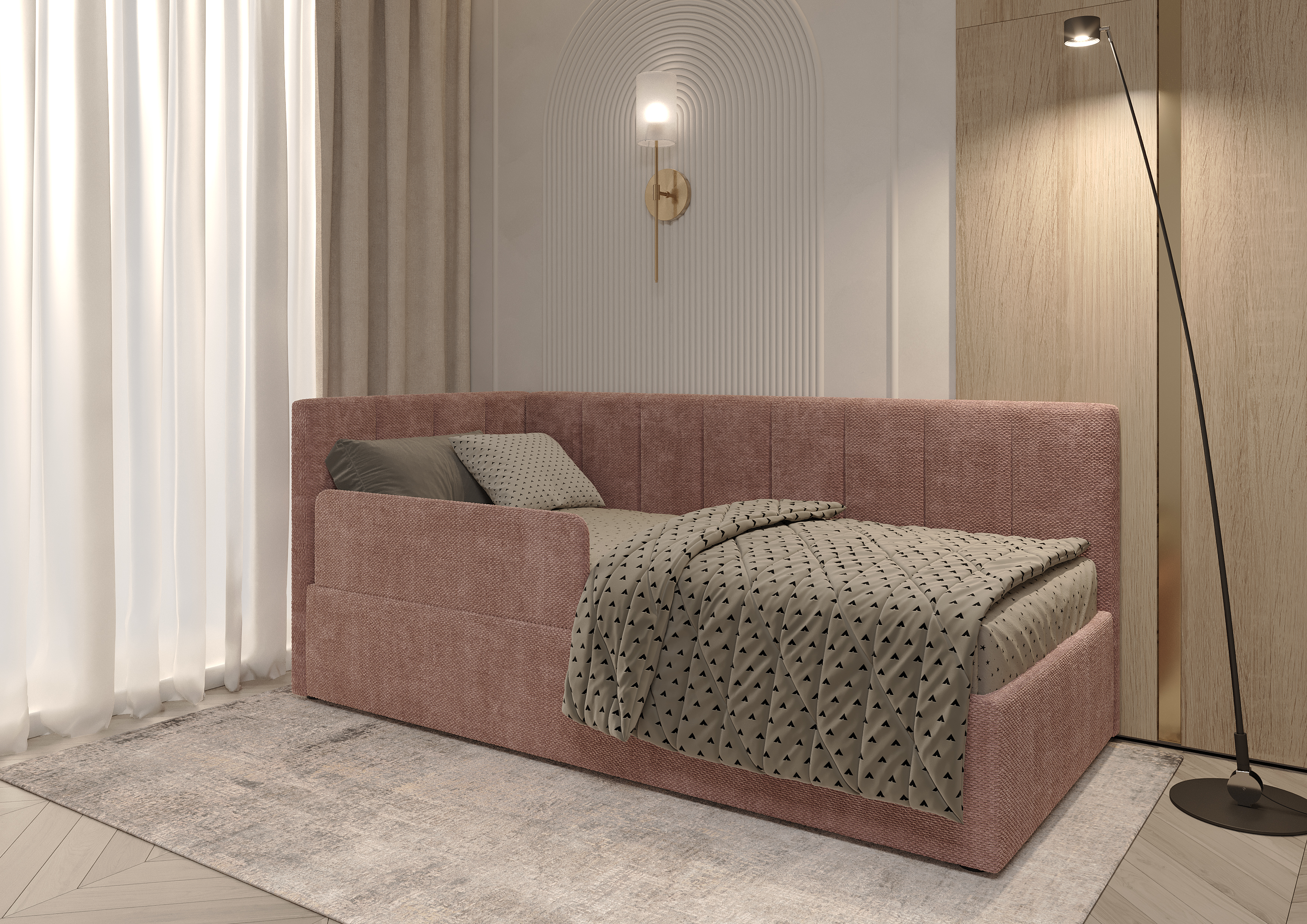 Кровать Юна шириной 0,9 м, с бельевым коробом.