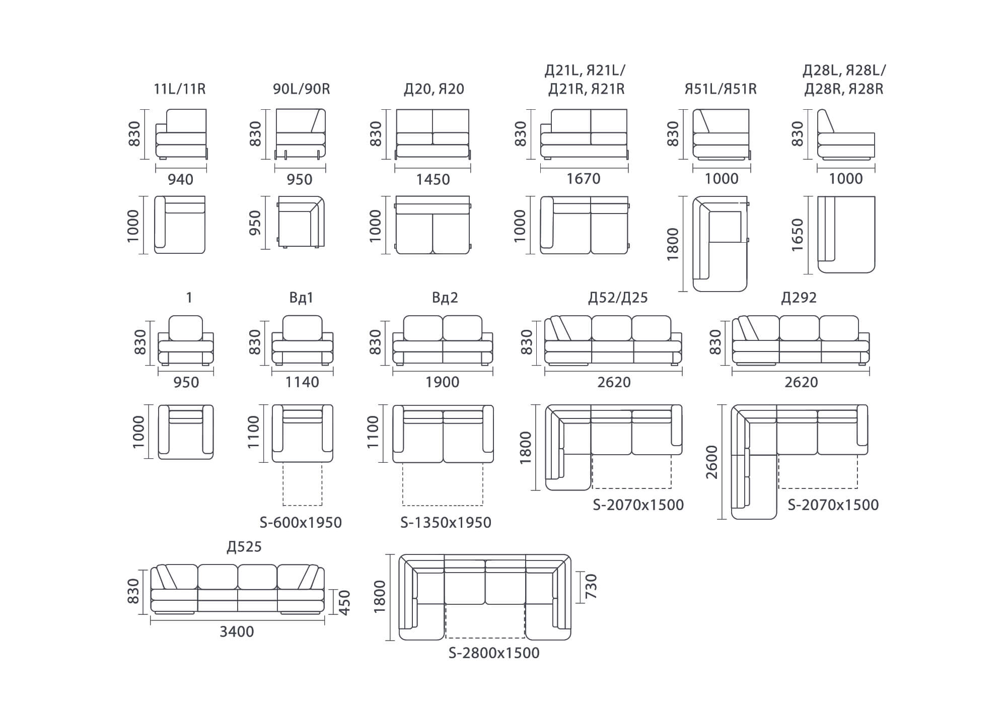 Сидение: брус срощенный сосновый, фанера (Е1), латофлекс, ППУ повышенной плотности, фибертекс, синтепон, термовойлок, возможно применение пружинного блока типа «Бонель» и пружины змейка.